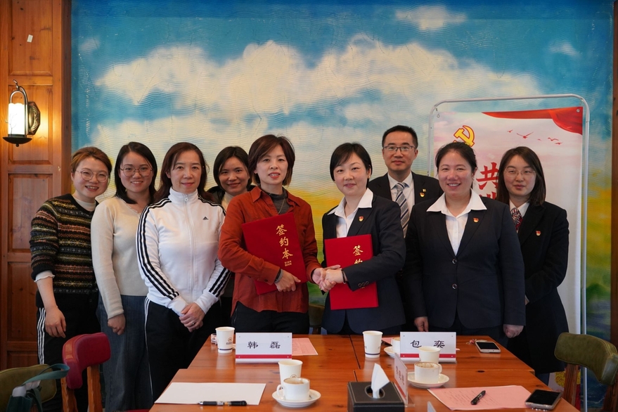 包奕表示,作为区域金融服务的标杆单位,期待与体育教育部党支部搭建校企合作新平台,双方在基层党组织联学共建、数字赋能党建、普惠金融推广等领域开展深度合作。韩磊期待以党支部缔结的合作务实求真,共同构建党建引领、文教融合、服务协同的校企合作机制,推动校地资源向基层延伸、向民生领域渗透。