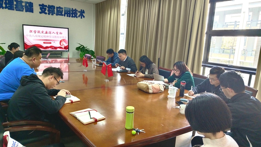 3月25日,理学院党委召开党委(扩大)会议,传达学习《中共中央办公厅关于在全党开展深入贯彻中央八项规定精神学习教育的通知》以及《上海应用技术大学深入贯彻中央八项规定精神学习教育实施方案》,部署推进学院深入贯彻中央八项规定精神学习教育工作。理学院党委书记陈雷作题为“深入贯彻中央八项规定精神”的专题党课。理学院党政班子成员、理论学习中心组成员、党委委员、党支部书记参会。