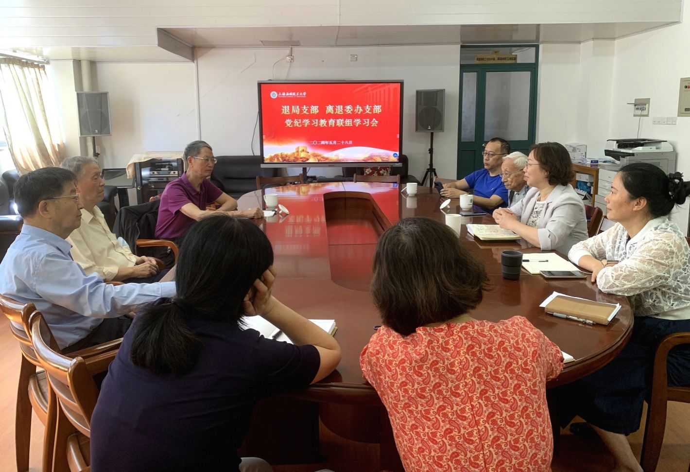 为深入学习贯彻习近平新时代中国特色社会主义思想,扎实开展党纪学习教育,增强党员纪律意识,强化政治担当,推动全面从严治党向纵深发展。5月28日,退休局级支部与离退委办公室支部联合开展党纪学习教育专题学习会。专题学习会由退局支部书记朱国强同志主持。离退休党委书记陈红在会上详细介绍了学校党委和离退休党委近期开展的党纪学习教育的工作部署和工作推进情况。