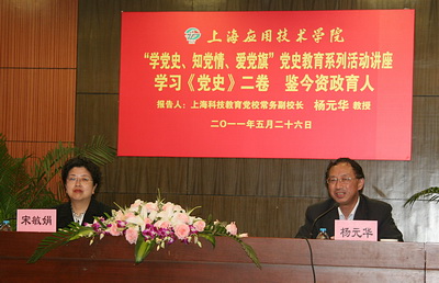 5月11日、26日,学校组织了三场党史讲座。上海市科教党校常务副校长杨元华,上海市委党史研究室征编处处长、《上海党史与党建》副主编袁志平,华东师大博导、上海中共党史学会副会长唐莲英分别受邀做题为《学习< 党史>二卷 鉴今资政育人 》、《党的伟大历程:伟大创举与伟大变革》和《井冈山精神与中华英豪》的讲座。各位党史专家结合多年党史研究的丰富经历,用生动的故事、精彩的图片展现了我党波澜壮阔的光辉历程。广大党员和入党积极分子受到了深刻的党史教育,进一步加深了对党的认识和感情,增强了对党的热爱和忠诚。