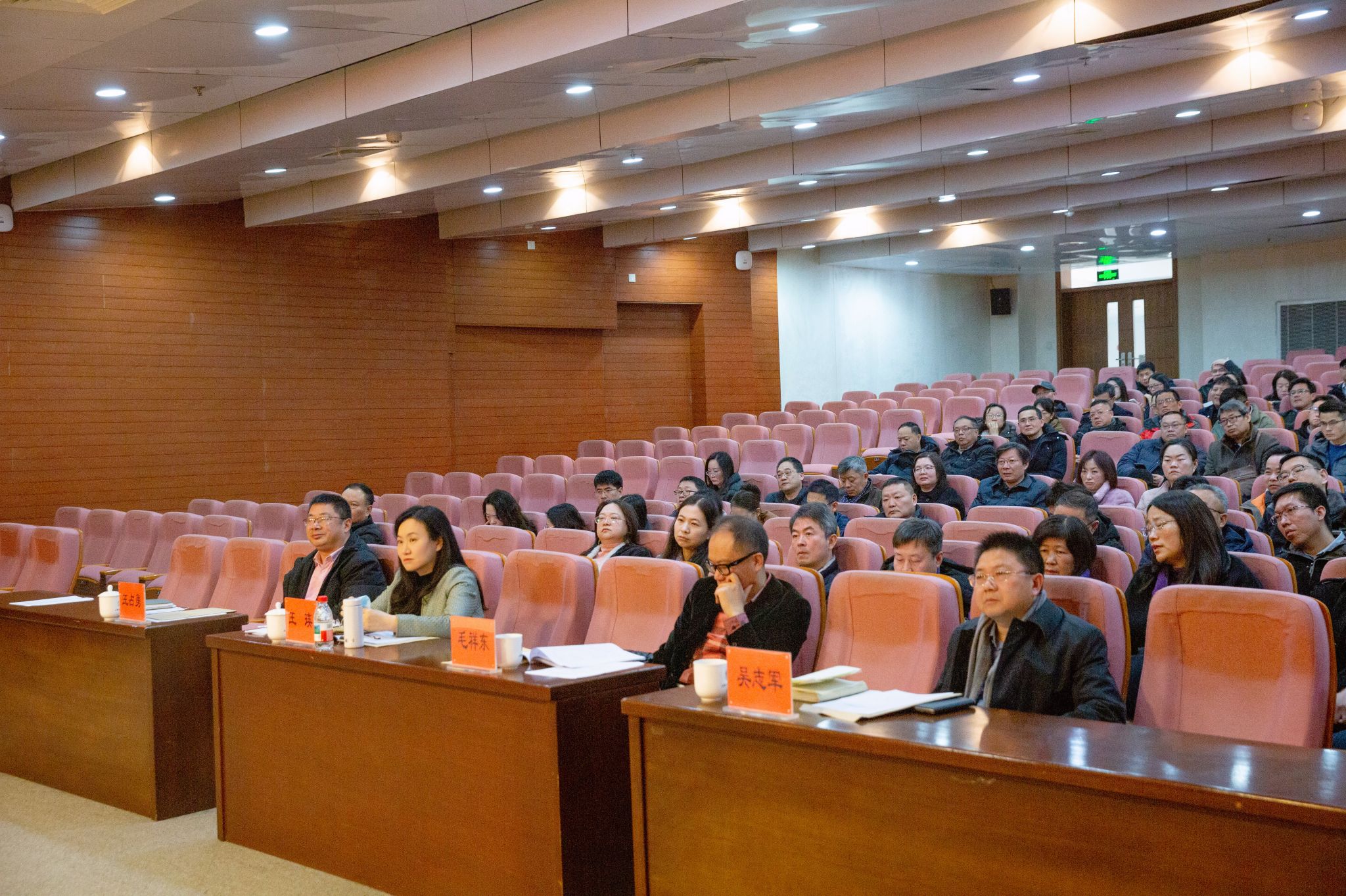 1月24日上午,学校第八轮中层干部换届任职宣布暨集体廉政谈话会在徐汇校区图文信息楼116报告厅举行。全体校领导、全体中层干部参加会议。会议由校长汪小帆主持。