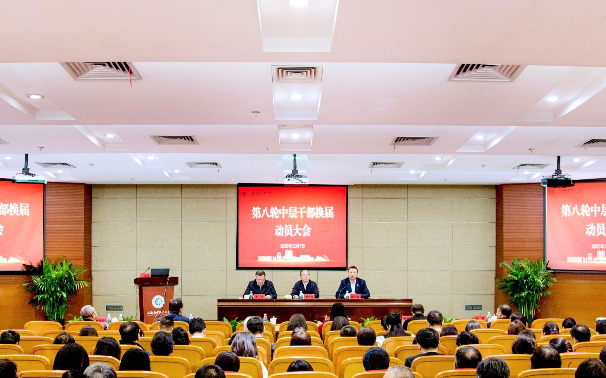 11月7日,学校召开第八轮中层干部换届动员大会,校党委书记郭庆松作动员讲话,校长汪小帆主持会议。