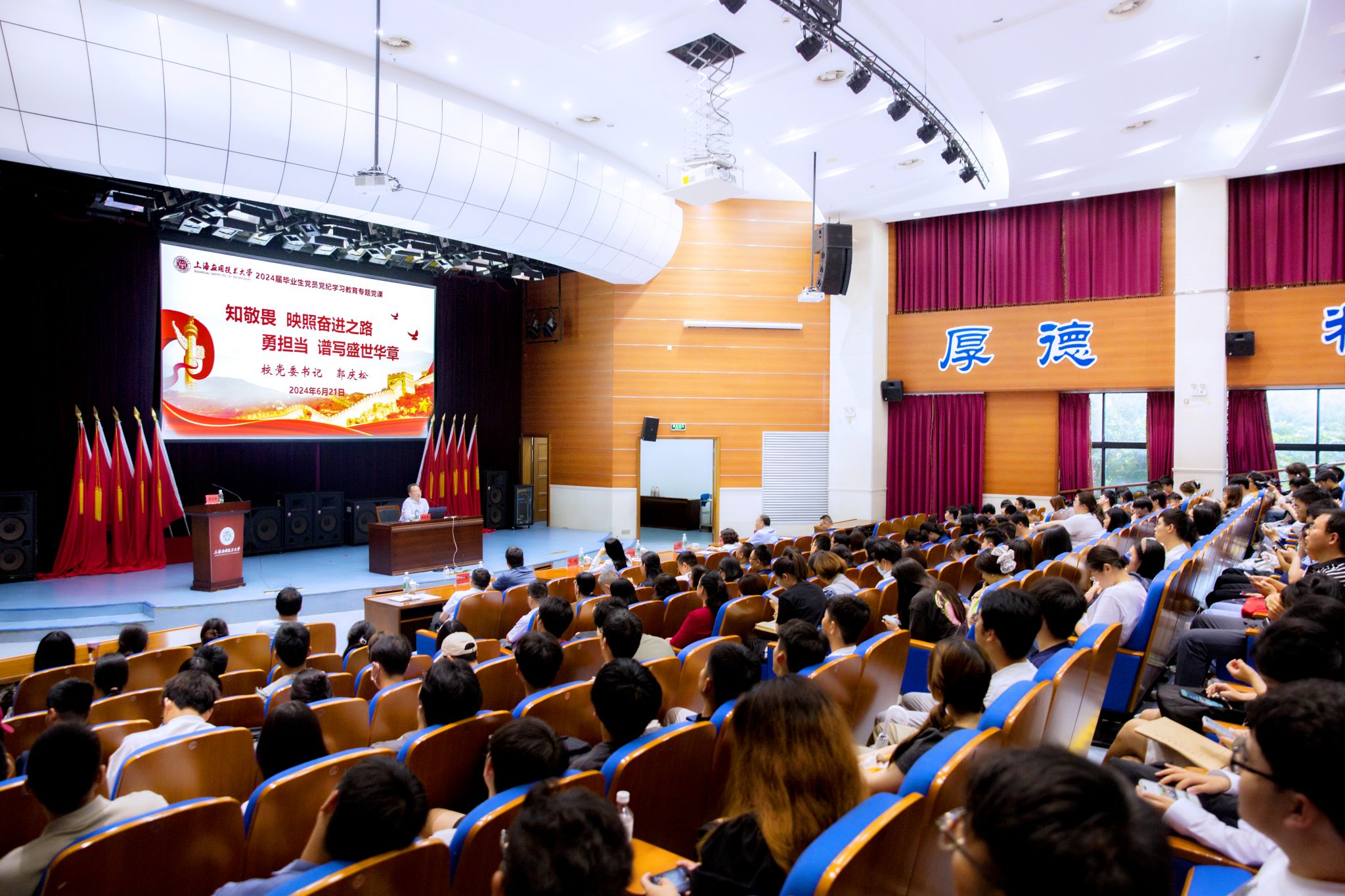 校党委副书记、副校长王瑛出席,校党委副书记陈海瑾主持授课活动,党委办公室、党委组织部、党委宣传部、党委学生工作部等部门负责人,相关学院党组织书记、学工副书记,全体毕业班辅导员、全体毕业班党支部书记以及2024届全体毕业生党员共同聆听了党课。