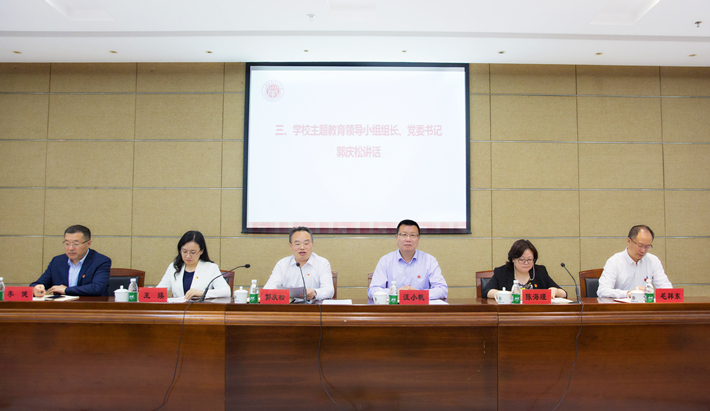 学校主题教育领导小组组长、党委书记郭庆松就巩固拓展主题教育成果作部署,校党委副书记、副校长王瑛领学习近平总书记最新重要讲话精神,校党委副书记、主题教育领导小组办公室主任陈海瑾主持会议并作主题教育总结报告。