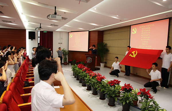 7月1日,在庆祝党的92岁华诞的喜庆日子里,学校隆重举行党员入党宣誓仪式,表达对党的忠诚和实现共产主义的信仰和决心。校党委副书记宋敏娟出席并讲话,中国电子科技集团公司第二十一研究所高级工程师、电机事业部第一党支部书记陆英应邀出席,优秀教师党员代表及250余名新党员参加了仪式。