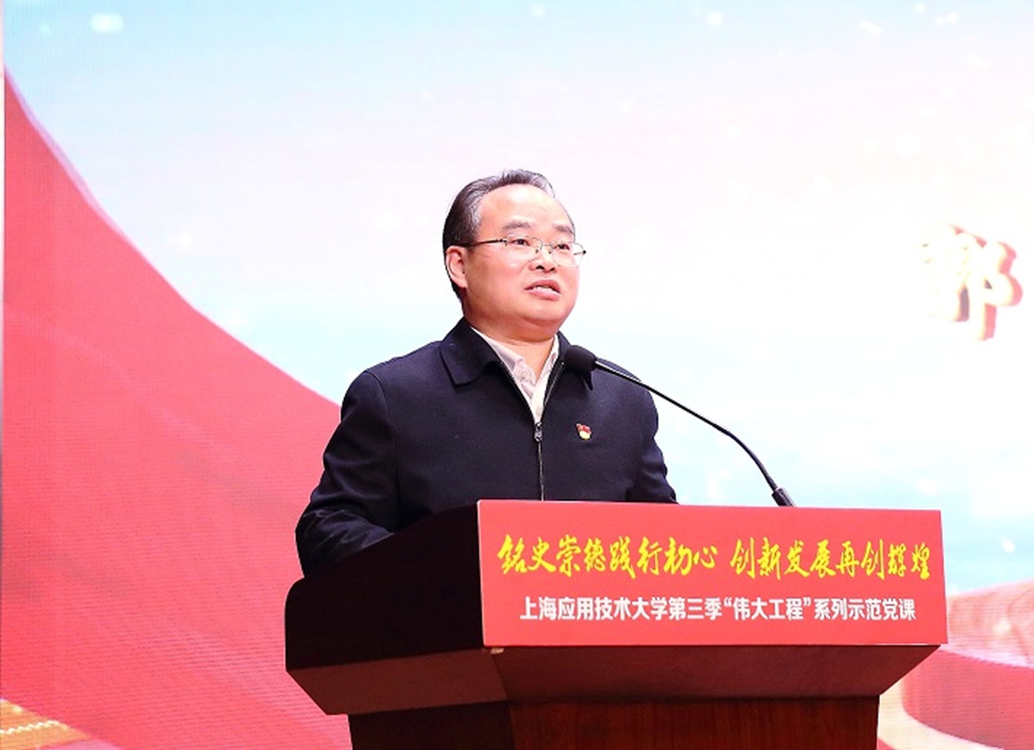 以史为鉴、开创未来。为深化党史学习教育,践行伟大建党精神,落实学校第四次党代会精神,奏响“十四五”奋进序曲,12月10日,上海市教卫工作党委系统第三季“伟大工程”示范党课之“铭史崇德践行初心 创新发展再创辉煌”主题党课在上海应用技术大学开讲。